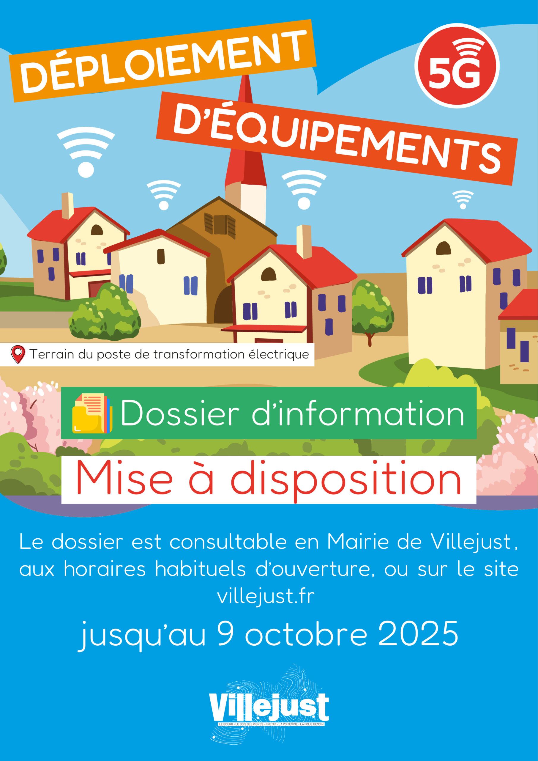 Dans le cadre de déploiement d’équipements 5G, la Mairie met à votre disposition le dossier d’information, qui a pour objectif de répondre aux éventuelles questions sur l’origine du projet, les étapes qui vont conduire à sa réalisation et les données techniques d’installation.