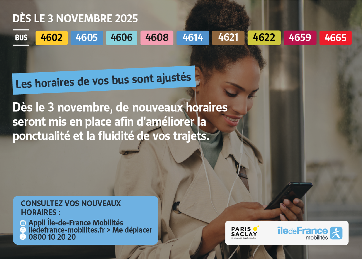 À partir du 3 novembre, les horaires des bus de territoire Paris Saclay changent.